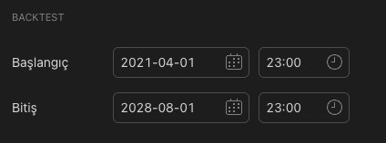 | Bitiş | Backtest için bitiş tarihini belirler. | 01 Ağustos 2028 |