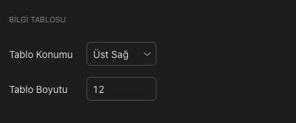 | Tablo Boyutu | Bilgi tablosundaki yazı boyutunu ayarlar. | 12 |
