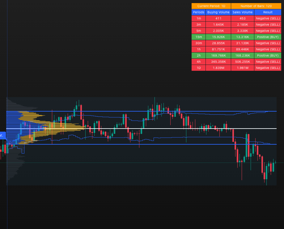This indicator analyzes volume activities across different timeframes, allowing you to clearly distinguish between buying and selling volume. This enables you to quickly and effectively assess market sentiment and make more informed trading decisions.